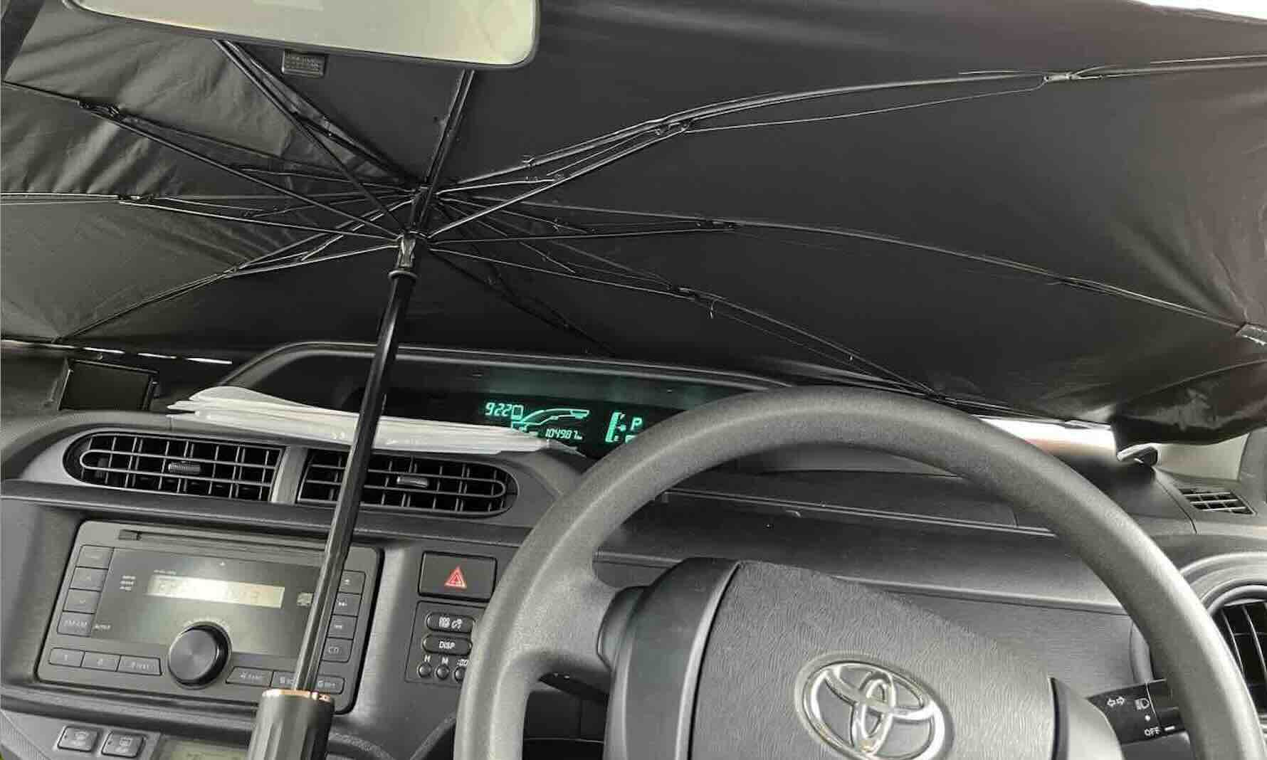 先生たちに教えてもらった、ワンタッチ式の傘型サンシェードを導入しました。設置・取り外しが簡単で、車内の温度が大きく変わるのを実感しています。