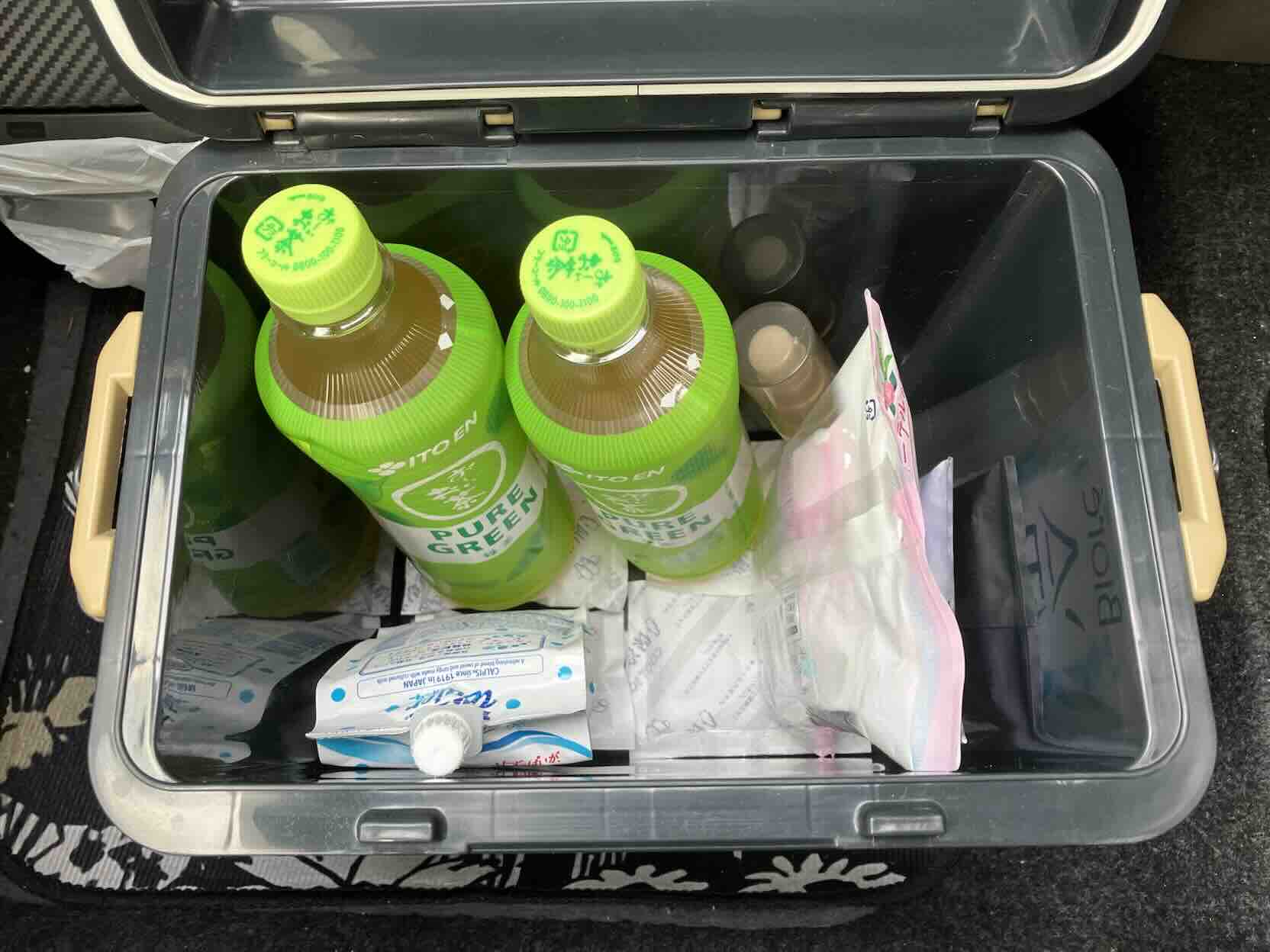 クーラーボックスを購入し、飲み物はもちろん、おにぎりやパンなどの軽食も保冷しています。